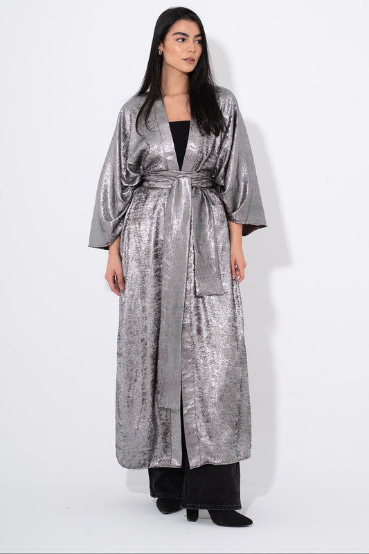 Noor Moon Metallic Kaftan - Silver