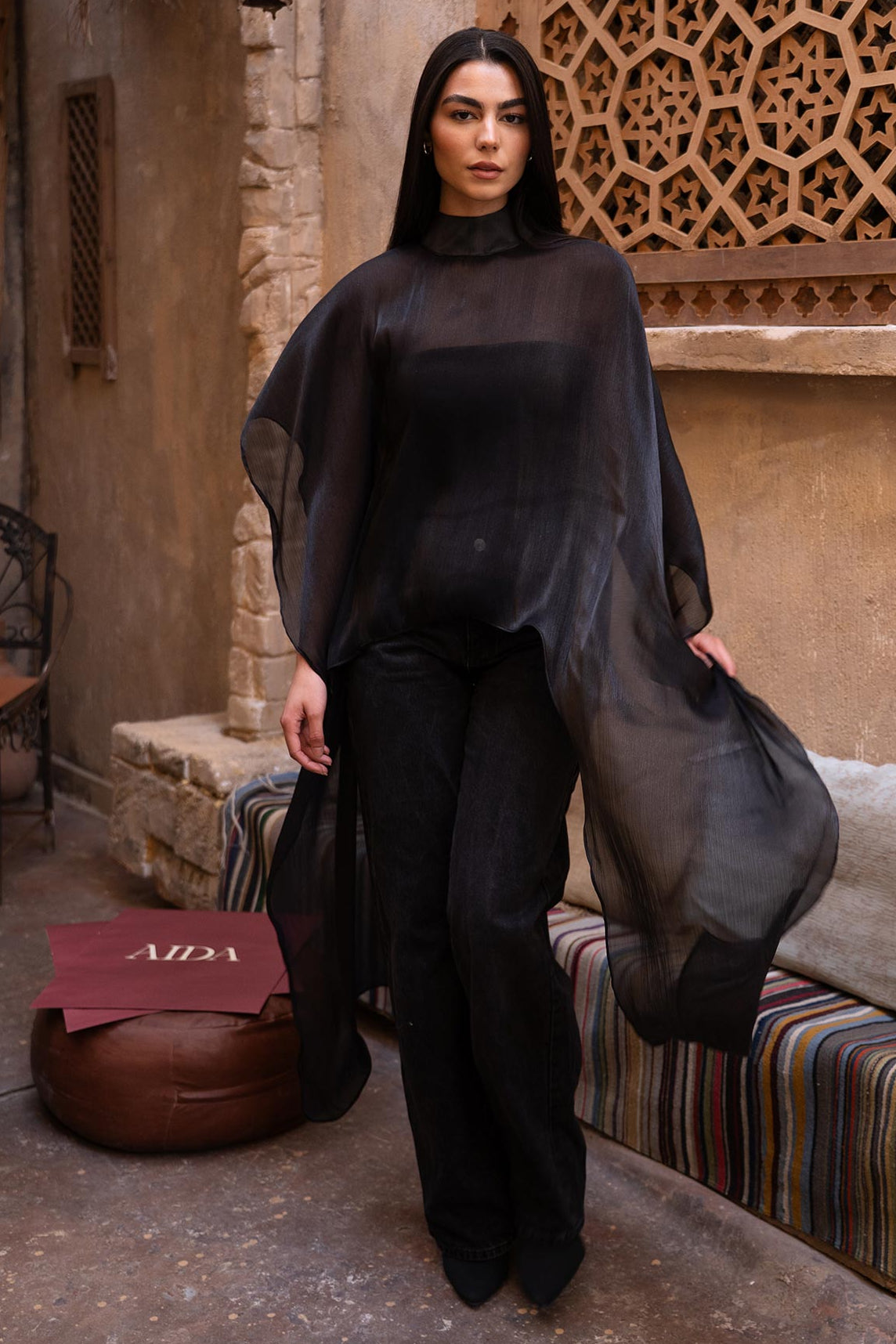 Organza Crinkled Blouse - Black